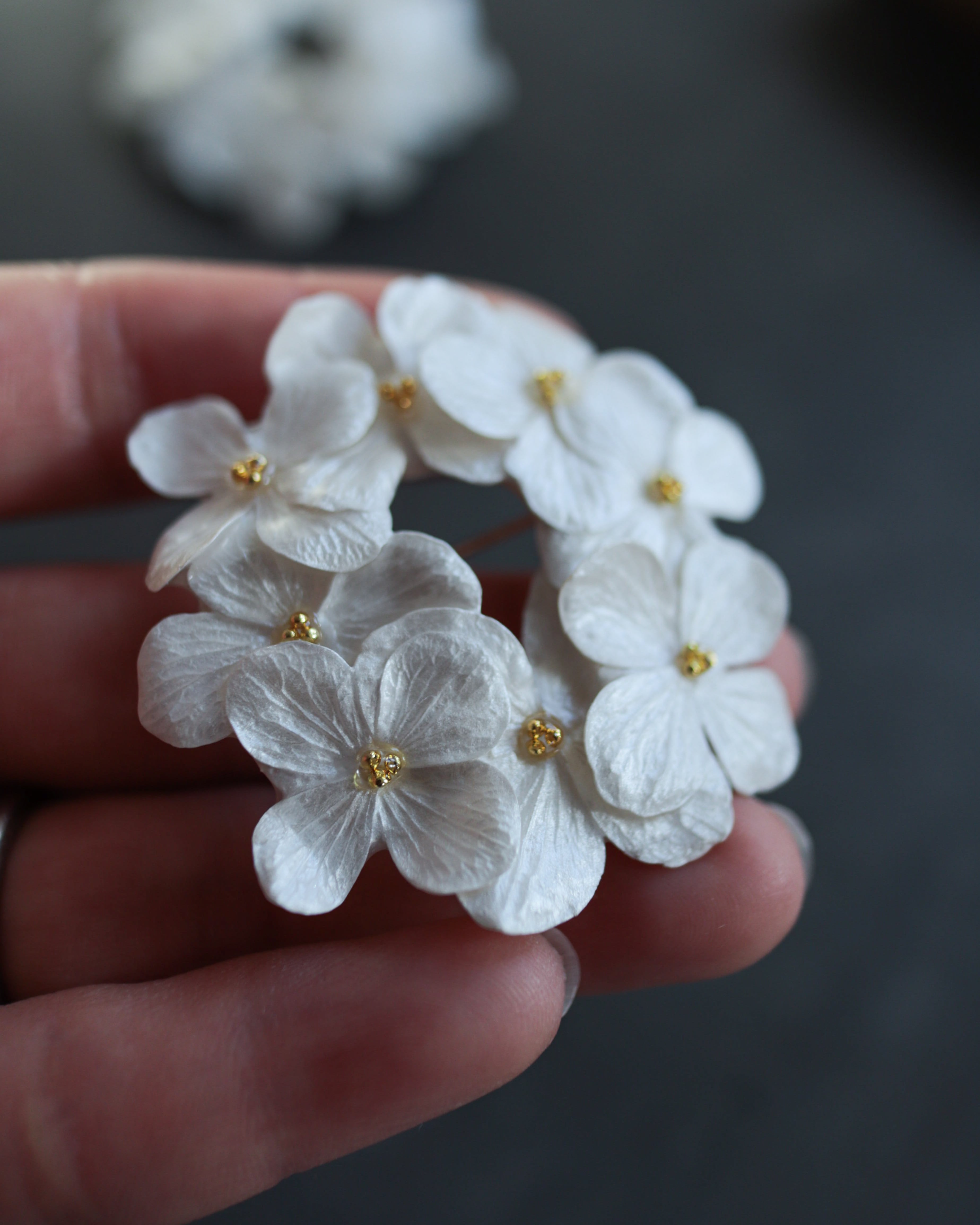 本物の紫陽花を一枚ずつ丁寧に加工し、