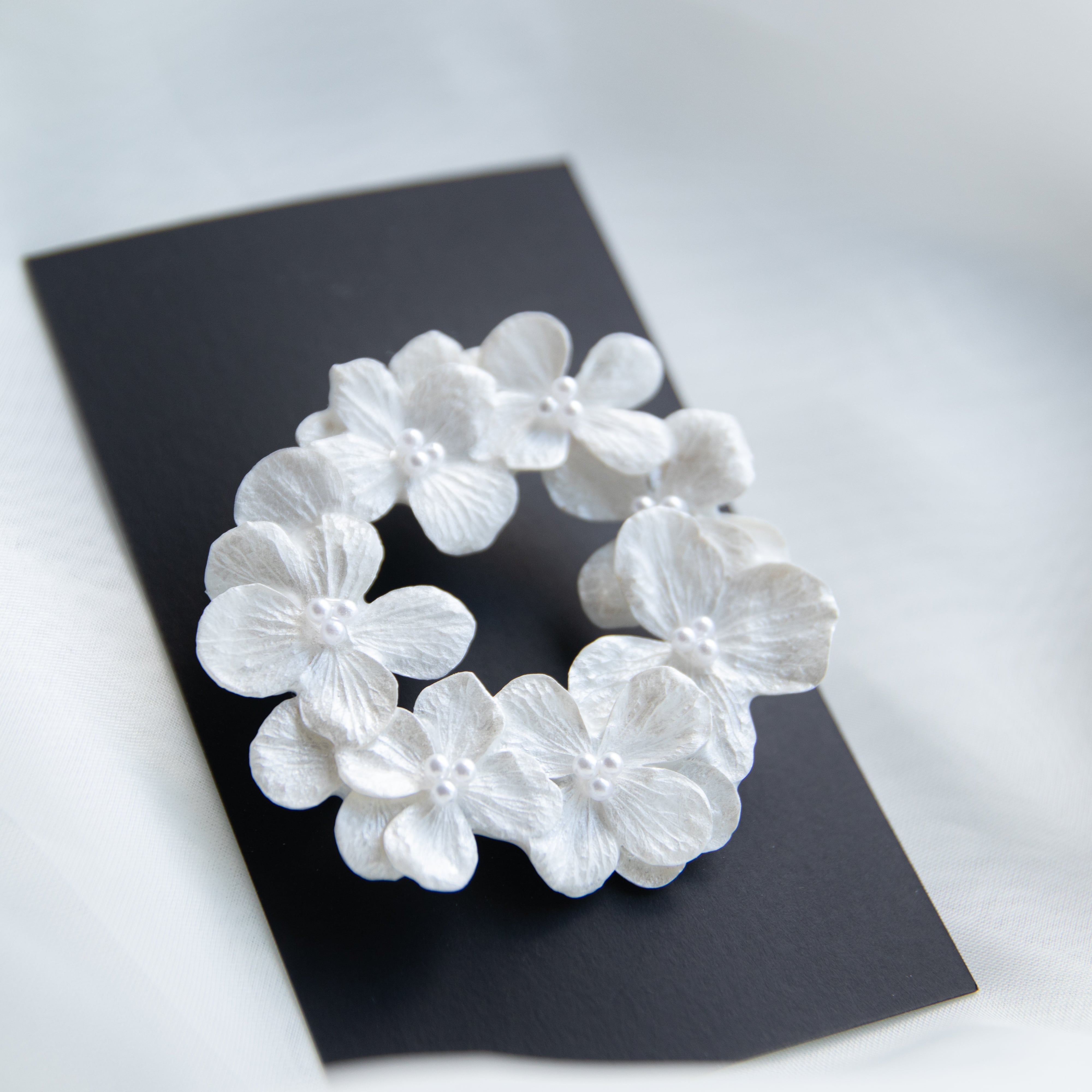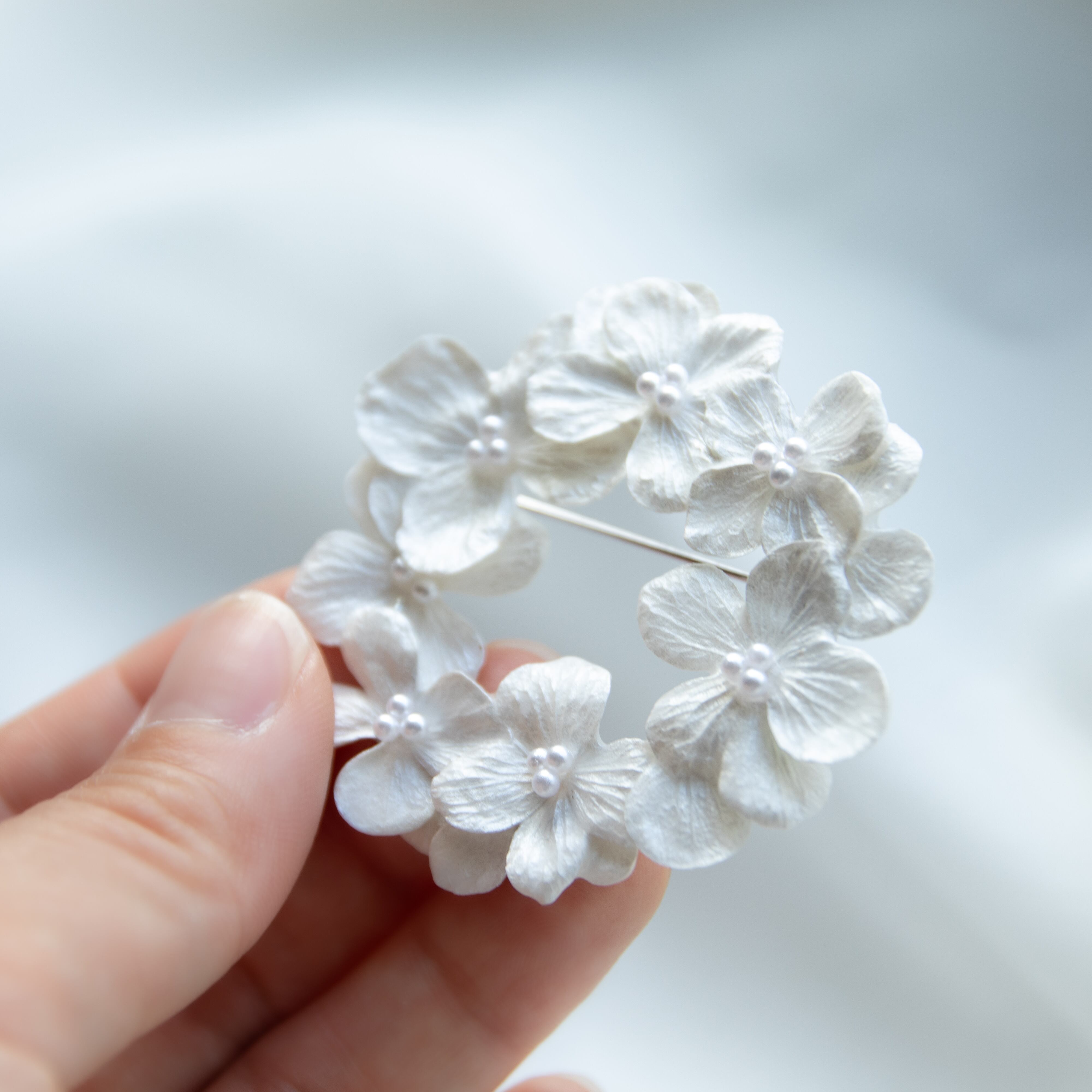 本物の紫陽花のパールホワイトブローチ お呼ばれ 結婚式 卒業式 入園式 卒園式 ギフト 贈り物 入学式 パールブローチ