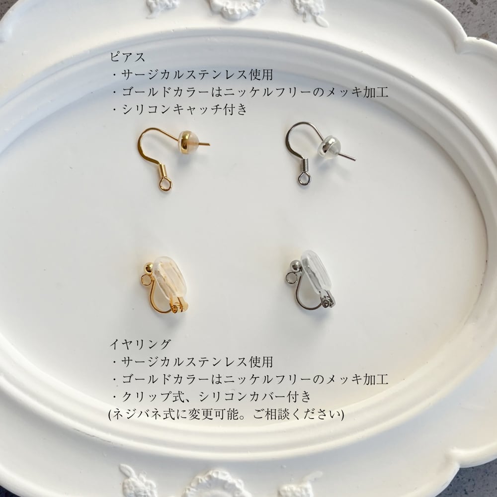 ・イヤーアクセサリーは優しくお使いいただくのが1番ですが、